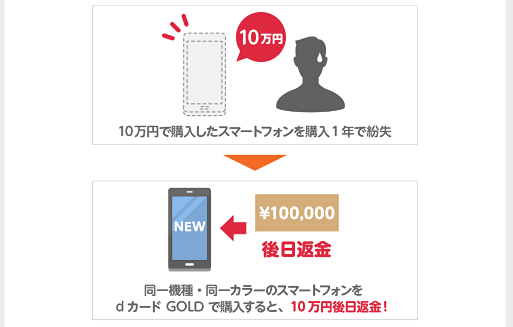 dカードGOLDなら3年間最大10万分のスマホ補償付き、