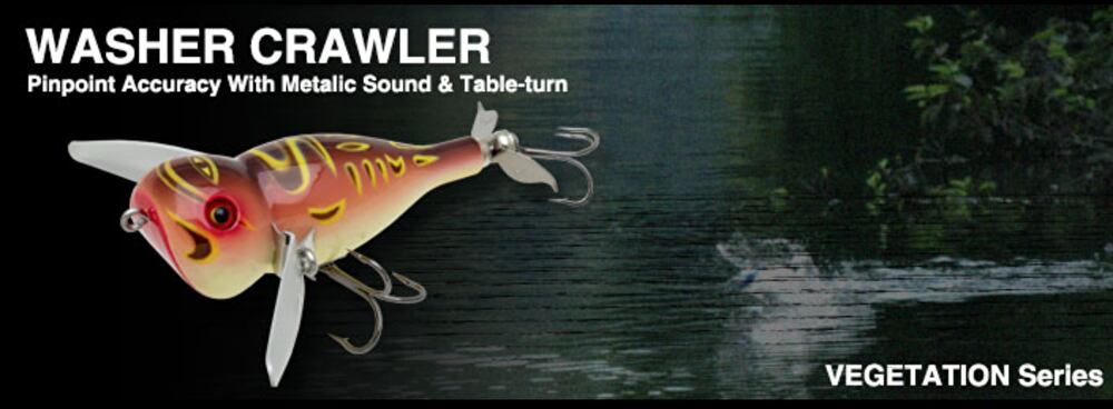 「ノリーズ ウォッシャークローラー」はウッドならではの着水音がバスに効果的です。また着水後にバイトがなくてもただ巻くだけで特殊水面音と波動で効果大です。