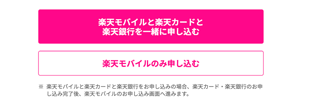 【STEP3】”楽天モバイルと楽天カードと楽天銀行を一緒に申し込む” か”楽天モバイルのみ申し込む”をタップします。※この記事では「楽天モバイルのみ申し込む」でSTEPを進めます
