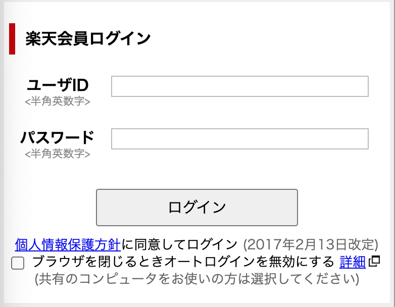 【STEP6】楽天会員ログインの画面が出てきますのでログインします。まだの方は新規登録を実施してください。