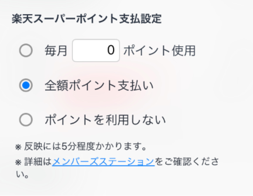 ”楽天スーパーポイント支払い設定”をタップして、
